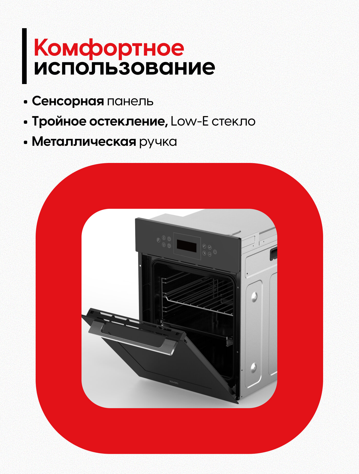 Купить Встраиваемый электрический духовой шкаф YOSHIRO YBO-M45F101, телескопические направляющие с доставкой по всей России.