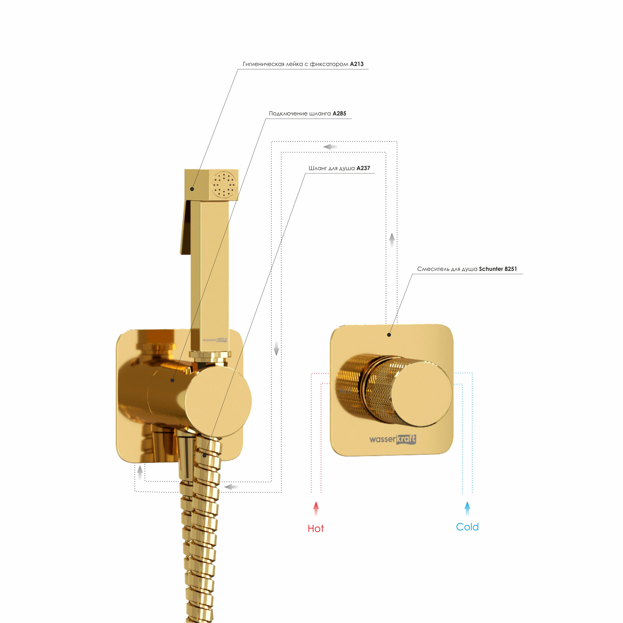 Купить Встраиваемый смеситель для биде с гигиеническим душем WasserKRAFT Schunter (A8251.285.237.213) золотой с доставкой по всей России.