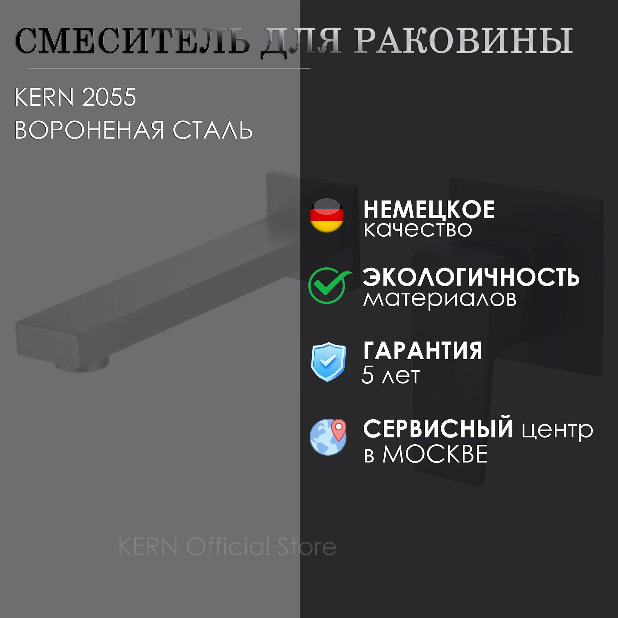 Купить Встраиваемый смеситель для раковины KERN 2055 вороненая сталь с доставкой по всей России.