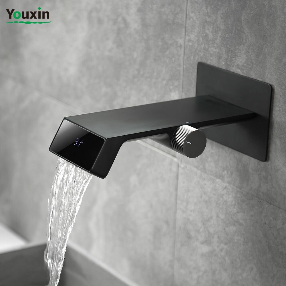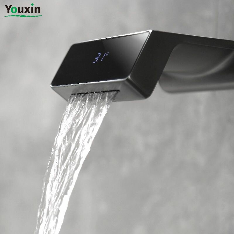 Встраиваемый смеситель для раковины (умывальника), цифровой дисплей, водопадный носик, латунь, подходит для ванны, серый.: сравнение цен, характеристики, фото, актуальное наличие и цены.