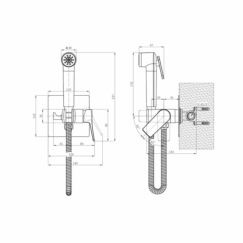 Купить Встраиваемый смеситель с гигиеническим душем Osgard Bretta Black (51053) черный с доставкой по всей России.