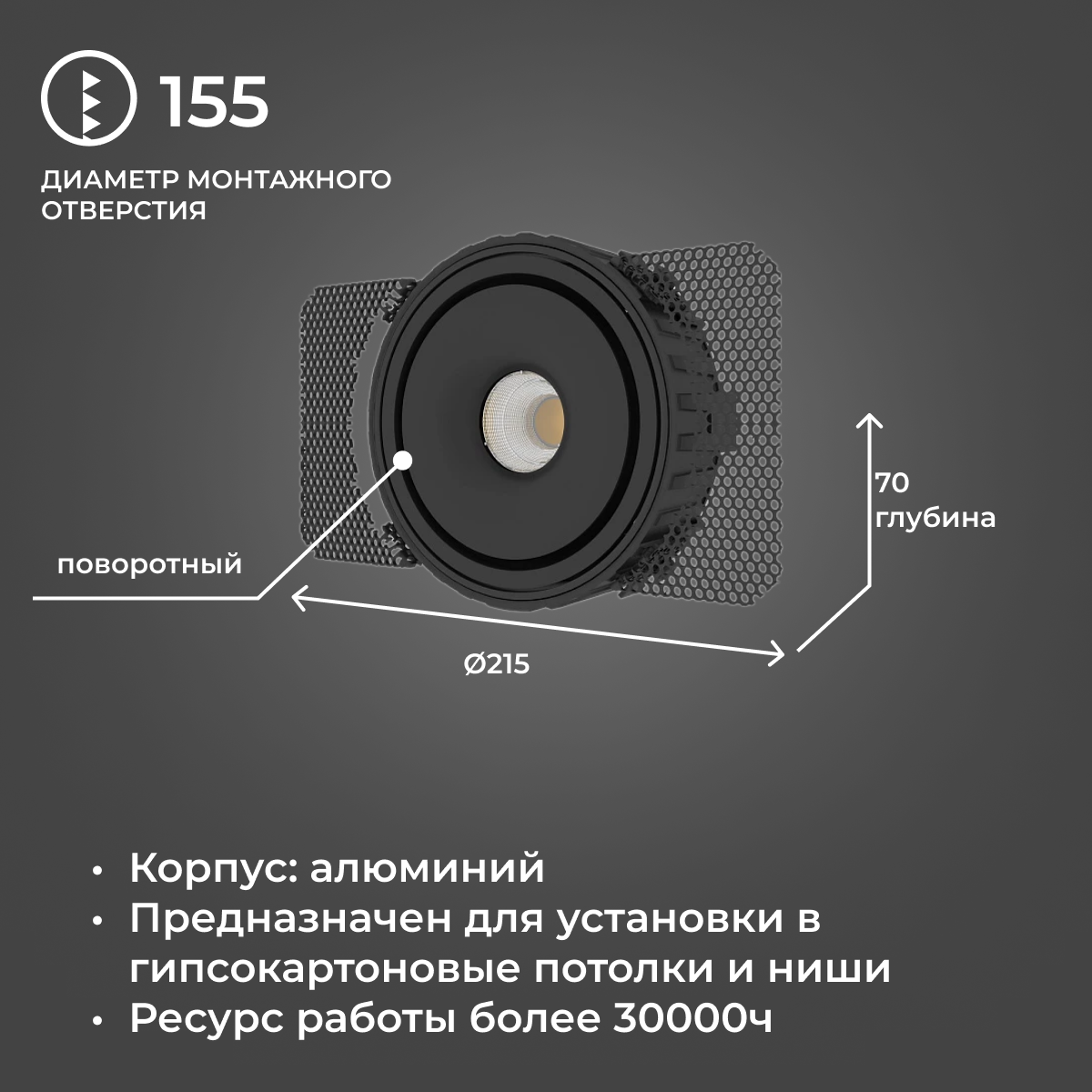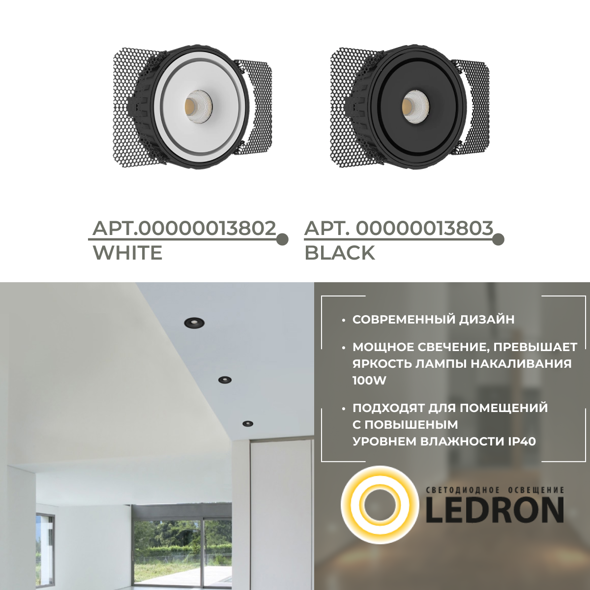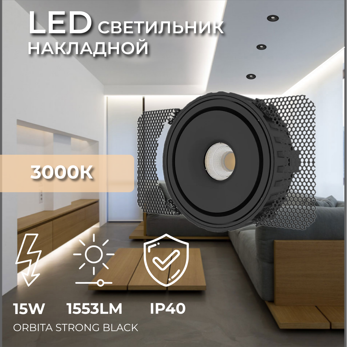Встраиваемый светодиодный потолочный светильник Ledron ORBIT STRONG Black 15W: сравнение цен, характеристики, фото, актуальное наличие и цены.