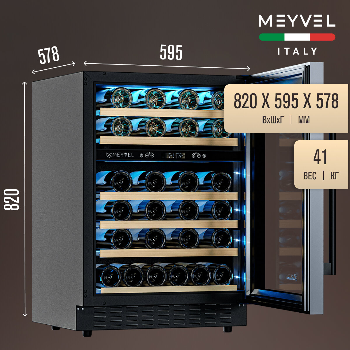 Meyvel MV46PRO-KBT2 отлично подходит для расположения на любой кухне. Шкаф можно встроить под столешницу и отрегулировать ножки по высоте, а так же, перенавесить дверь для более удобного использования (петли входят в комплект).