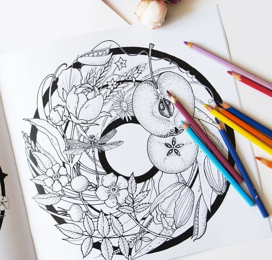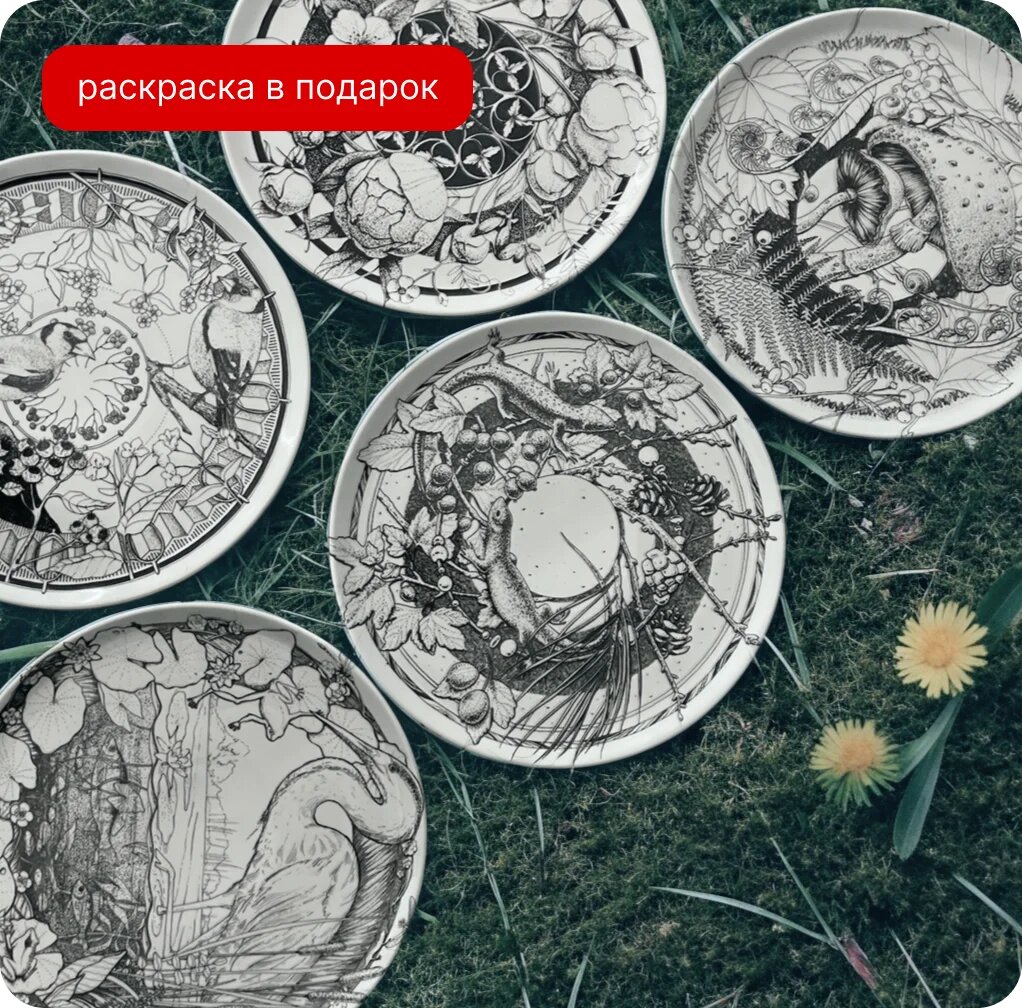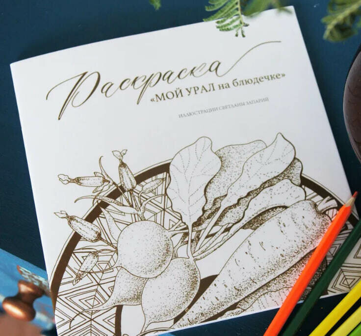 В комплекте с тарелками идет раскраска "Мой Урал на блюдечке", где собраны 24 авторские иллюстрации Светланы. Это отличный способ расслабиться и отвлечься от повседневной суеты.