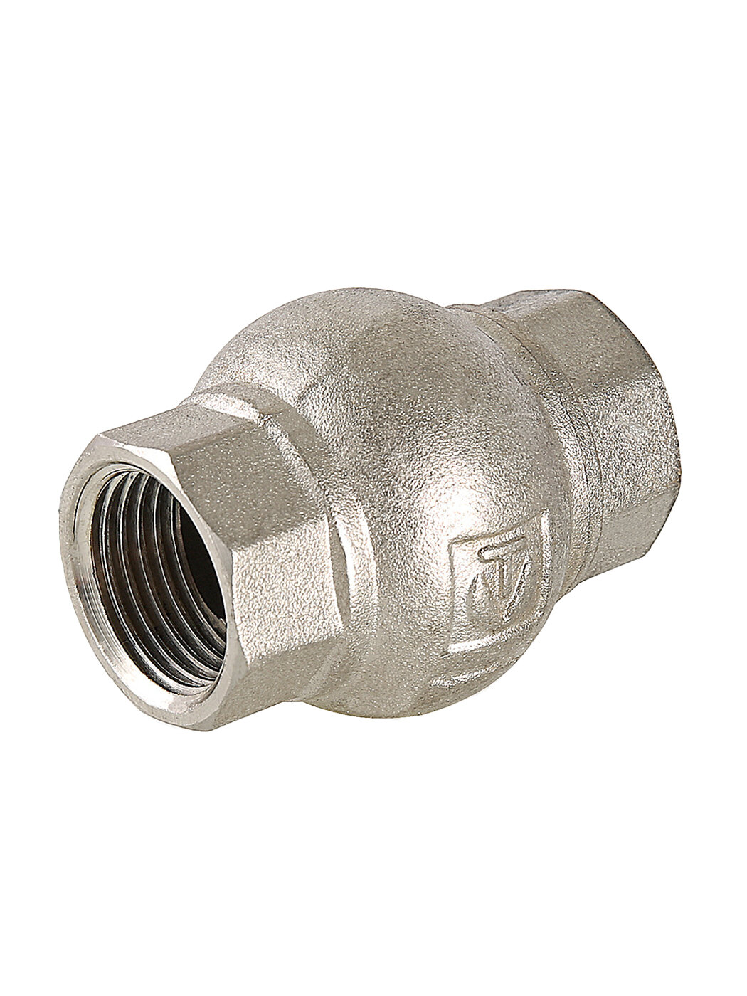 Вниманиеуказана розничная цена, оптовые цены уточняйте У менеджера.(VT.151. N) Обратный клапан пружинного типа допускается использовать в установках холодного и горячего водоснабжения, водяного отопления, подачи сжатого воздуха, других жидкостей и газов, неагрессивных к материалам клапана. Клапан может устанавливаться в любом положении (гидравлические характеристики не меняются) и не имеет трущихся поверхностей. Корпус, шток и золотниковая тарелка выполнены из латуни марки CW617N (европейский стандарт EN 12165), никелированы. Благодаря этому клапан допускается применять в системах с рабочей температурой до 130 °C. Сферическая форма золотниковой камеры обеспечивает большую, чем у цилиндрических клапанов, пропускную способность. Номинальное рабочее давление клапана VALTEC VT 151 – 40 (Ду 1/2) и 25 (Ду 2) бар. Минимальное рабочее давление – 0,05 бара. Минимальный перепад давления открытия клапана – 0,025, закрытия – 0,05 бара. Присоединительная резьба – внутренняя/внутренняя.