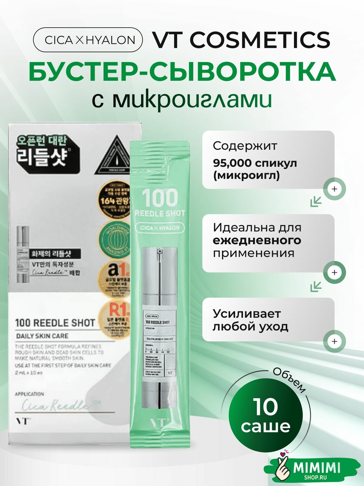 Купить VT Cosmetics Бустер-сыворотка с микроиглами VT Cosmetics Reedle Shot 100, 10 шт. по 2 мл с доставкой по всей России.
