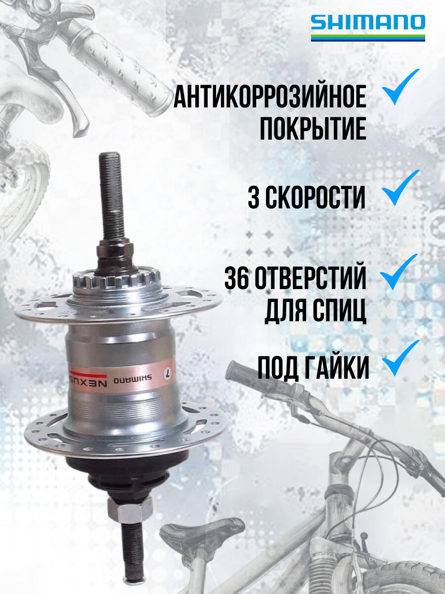 Втулка планетарная SHIMANO 3R40, 36H, 3 скоростная, OLD:127мм, антикор покрытие, роллерный тормоз, серебристый: сравнение цен, характеристики, фото, актуальное наличие и цены.