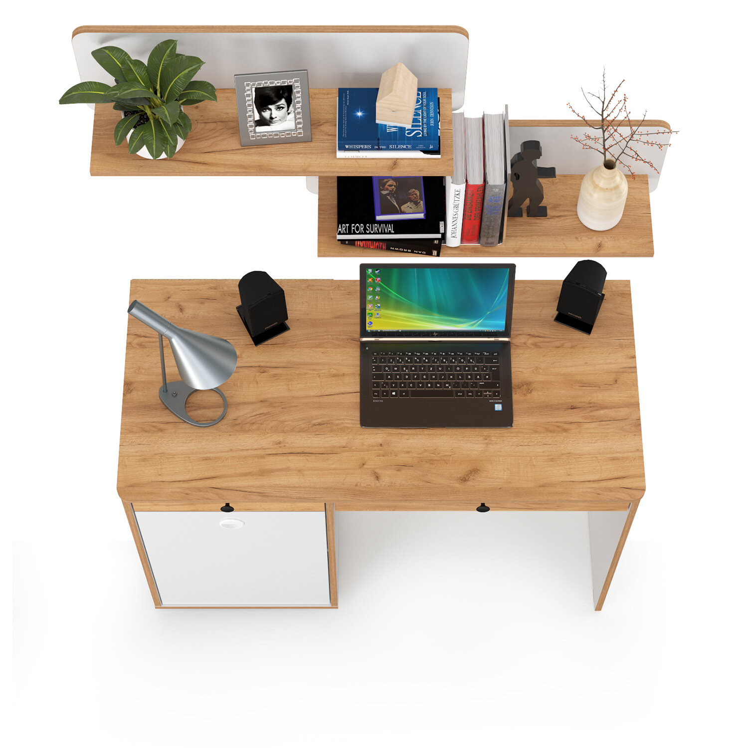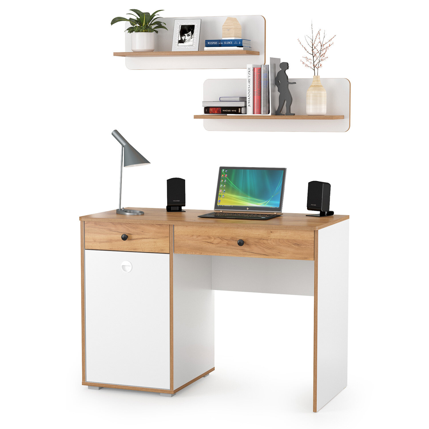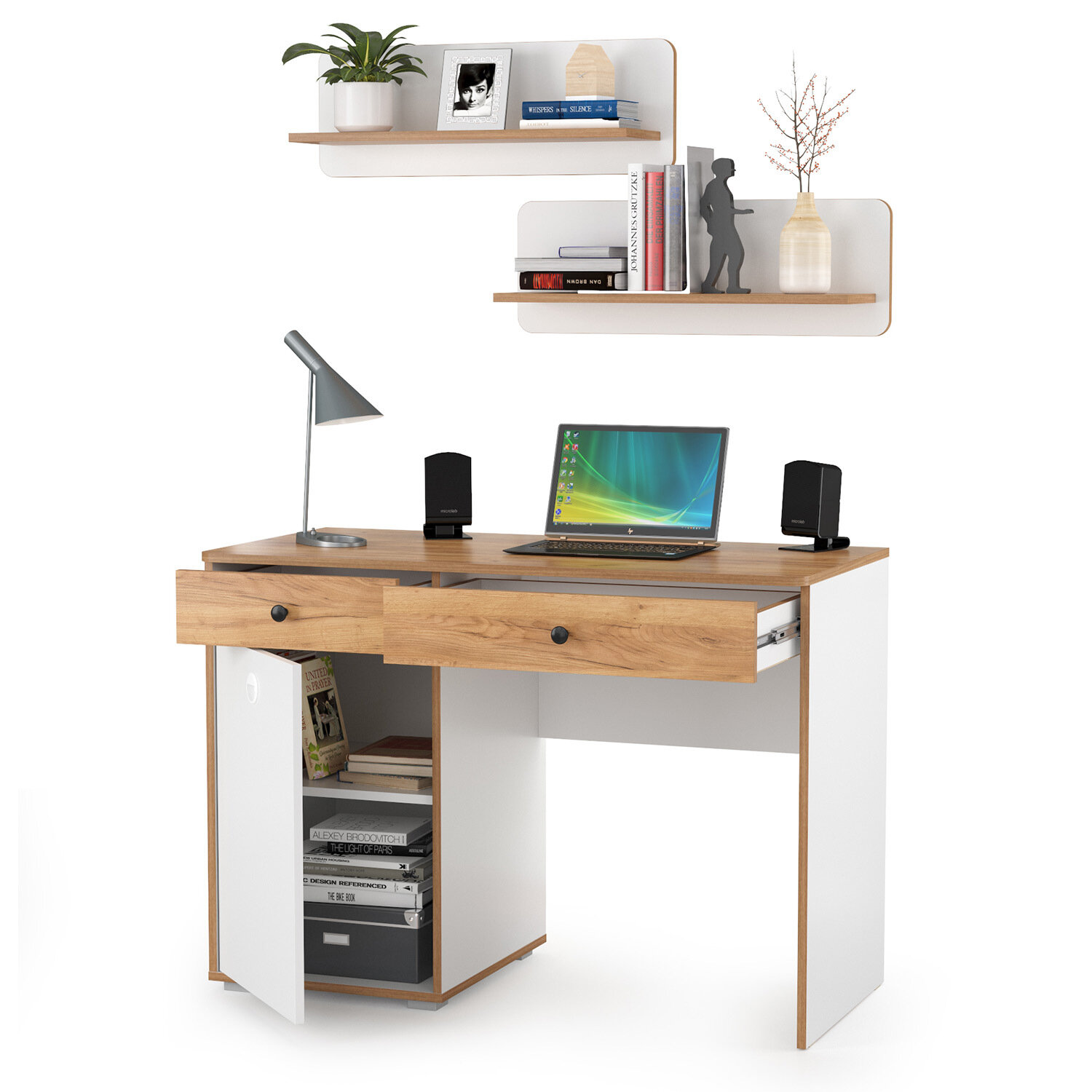 Купить Вуди Стол письменный 12.42 + 2хПолка 15.46, цвет белый премиум/дуб крафт золотой с доставкой по всей России.