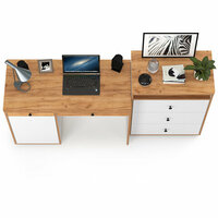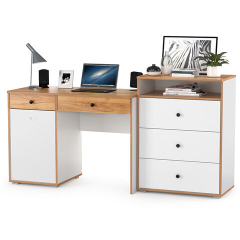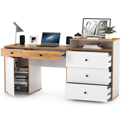 Купить Вуди Стол письменный 12.42 + Комод 13.293, цвет белый премиум/дуб крафт золотой с доставкой по всей России.