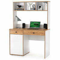 Купить Вуди Стол письменный 12.42 + Надстройка на стол 13.161, цвет белый премиум/дуб крафт золотой с доставкой по всей России.