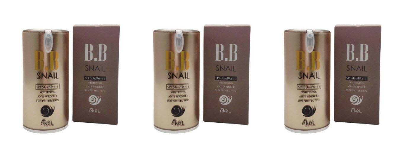 Купить ВВ крем с экстрактом улитки для лица Ekel BB Snail Cream SPF 23 Whitening Anti-Wrinkle Sun Protector 50+/PA (Pump), 50 мл, 3 шт. с доставкой по всей России. ВВ крем с экстрактом улитки для лица Ekel BB Snail Cream SPF 23 Whitening Anti-Wrinkle Sun Protector 50+/PA (Pump), 50 мл, 3 шт.: сравнение цен, характеристики, фото, актуальное наличие и цены.