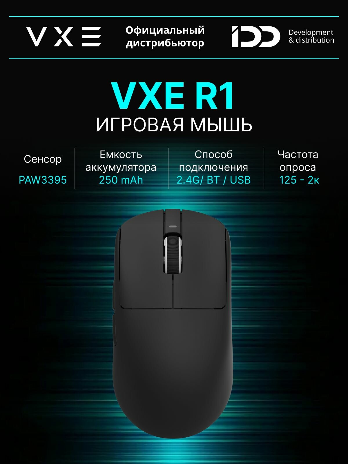 | Комплектация | Игровая мышь АТК x VXE R1 - 1 шт. Кабель Type-C - 1 шт. Ресивер - 1 шт. Глайды - 2 шт. Инструкция - 1 шт. |