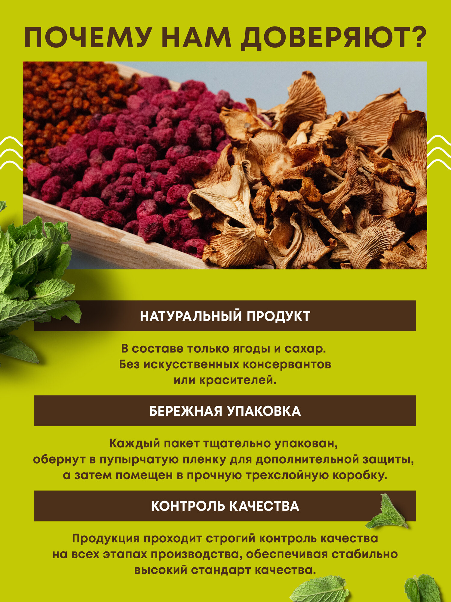 Ягоды собираются, высушиваются и проходят тщательный контроль качества, что гарантирует их безопасность и высокое качество.