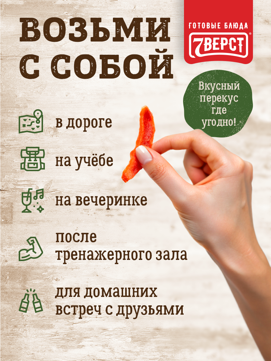 Вяленое мясо 7 Верст – это не просто снек, а качественный продукт с продуманной рецептурой и бережной технологией изготовления. Он отлично подойдет тем, кто ценит натуральность и удобство в повседневном питании. Такой продукт станет хорошим выбором для разнообразия рациона и внесет новые вкусовые оттенки в привычные перекусы.