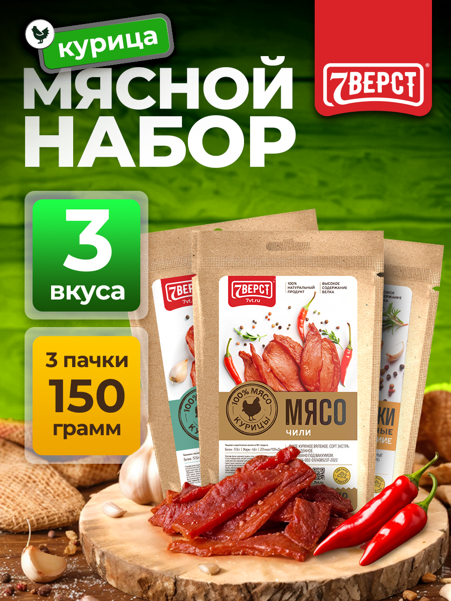 Купить Вяленое мясо 7 Вёрст набор (Чили, Чесночное, Колбаски) Снеки 150 г с доставкой по всей России. Вяленое мясо 7 Вёрст набор (Чили, Чесночное, Колбаски) Снеки 150 г: сравнение цен, характеристики, фото, актуальное наличие и цены.