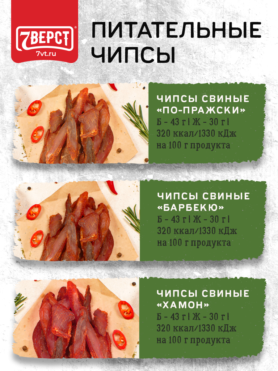 Вяленое мясо 7 Верст представляет собой натуральный продукт, который сочетает в себе традиционные методы приготовления и современные вкусовые предпочтения. Этот вид сушеного мяса отличается особой текстурой и насыщенным вкусом, что делает его отличным выбором для любителей мясных снеков. Благодаря специальной технологии обработки, мясные чипсы сохраняют максимум питательных веществ и при этом обладают легкой жевательной структурой.