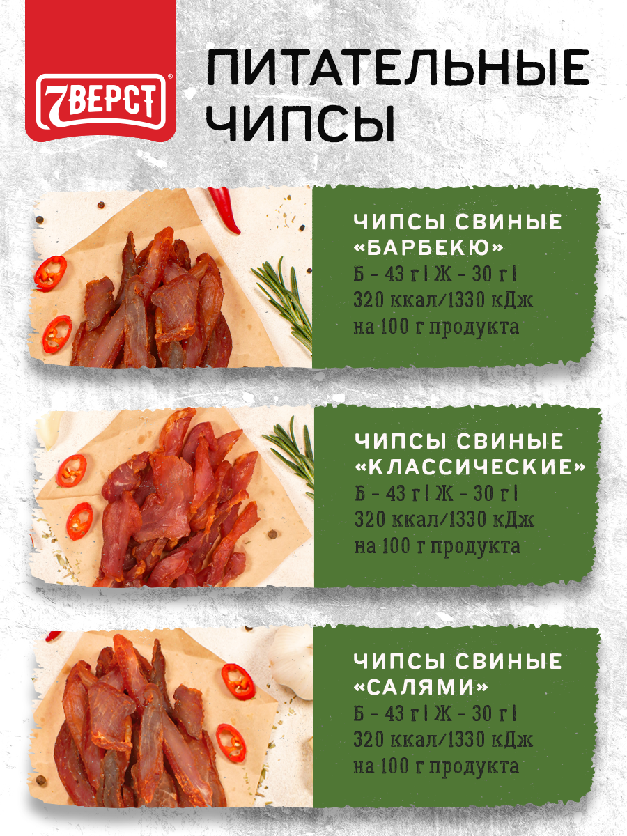 Вяленое мясо 7 Верст представляет собой натуральный продукт, который сочетает в себе традиционные методы приготовления и современные вкусовые предпочтения. Этот вид сушеного мяса отличается особой текстурой и насыщенным вкусом, что делает его отличным выбором для любителей мясных снеков. Благодаря специальной технологии обработки, мясные чипсы сохраняют максимум питательных веществ и при этом обладают легкой жевательной структурой.