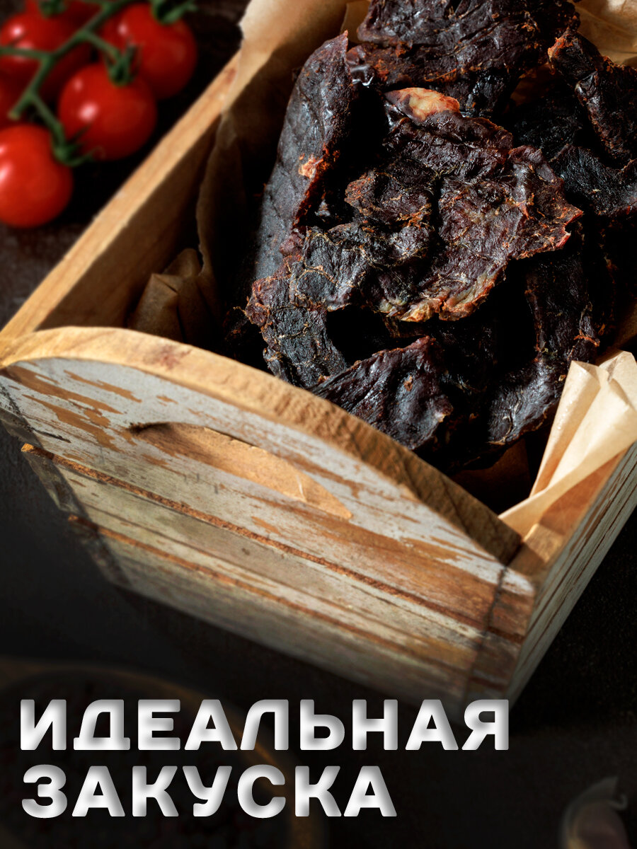 Цельные кусочки сыровяленого мяса конины (100% мяса) в большой упаковке 500 гр. Изготавливается из мяса категории А, с добавлением специй, классический вкус имеет легкий оттенок пряных специй и остроты. В нем высокое содержание белка и низкое содержание углеводов, не пересушено. Это легкая и удобная закуска, которую можно взять с собой в дорогу, на работу или просто наслаждаться дома во время отдыха. Вакуумная упаковка позволяет хранить продукт без холодильника (от 0 до +25 срок годности 180 суток.) Вяленое мясо идеально подходят для пикника, вечеринок или встреч с друзьями, так как позволяют разнообразить меню и удовлетворить желание испробовать что-то новое и оригинальное. Джерки или мясные чипсы — это настоящий деликатес для ценителей вкусной еды и снеков! Станет идеальной закуской к бокалу пенного пива, а также вкусным мясным снеком, который отлично дополнит основное блюдо. Удивляйте родных и близких приятными подарками и балуйте любимых вкусным вяленым мясом!
