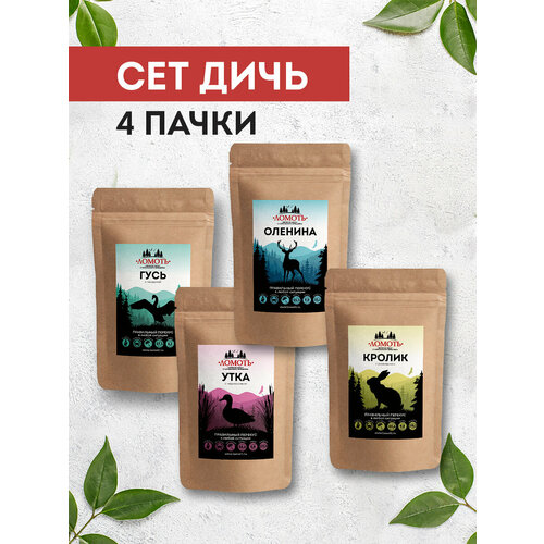 В составе сета "Дичь" вы найдете оленину, лося, кролика и утку. Это разнообразие вкусов и текстур позволит вам каждый день открывать для себя новые гастрономические ощущения.