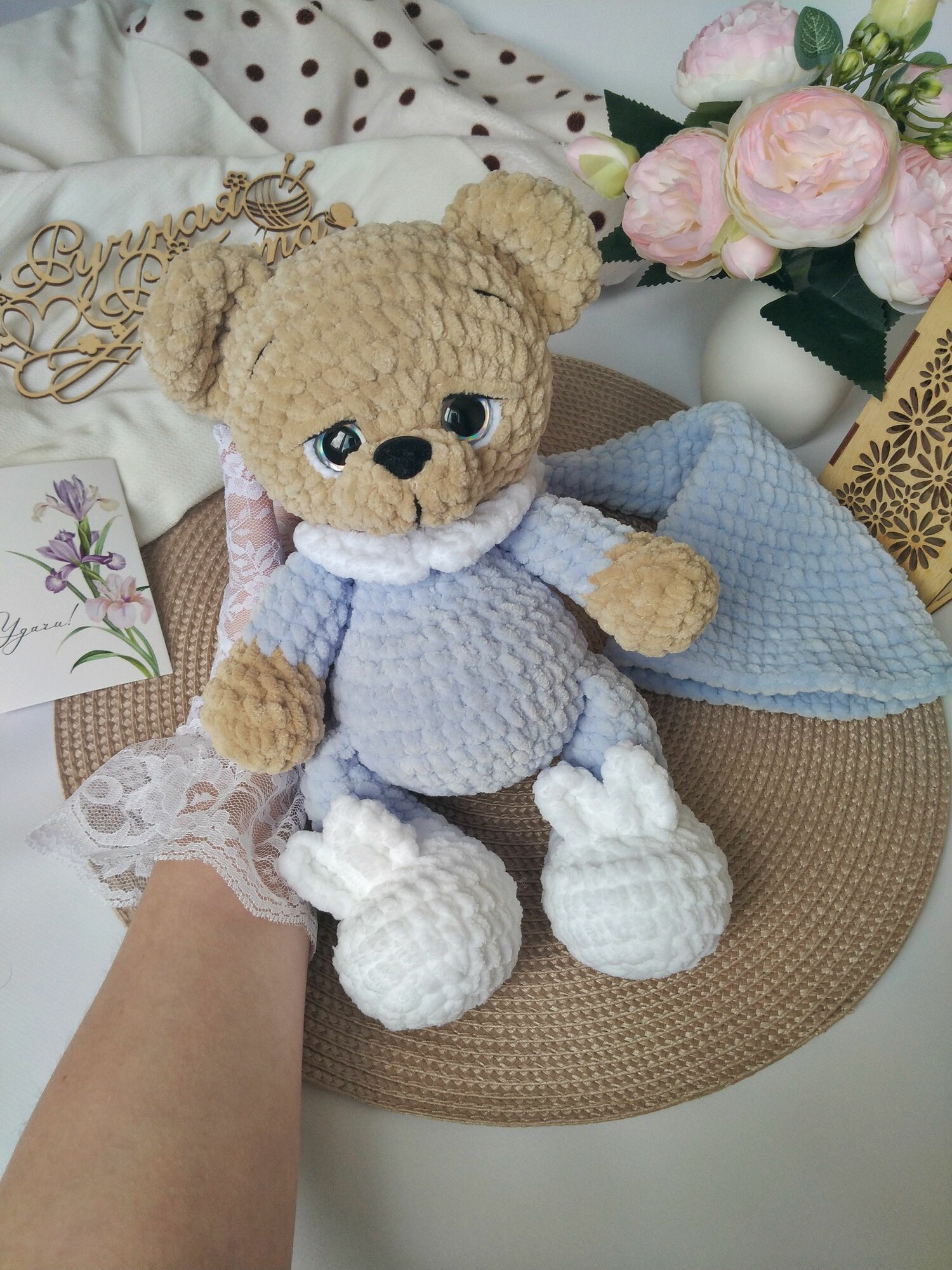 Купить Вязаная мягкая игрушка сувенир Мишка в пижаме и колпаке, 27 см, ручная работа, коричневый, голубой, белый с доставкой по всей России. Вязаная мягкая игрушка сувенир Мишка в пижаме и колпаке, 27 см, ручная работа, коричневый, голубой, белый: сравнение цен, характеристики, фото, актуальное наличие и цены.