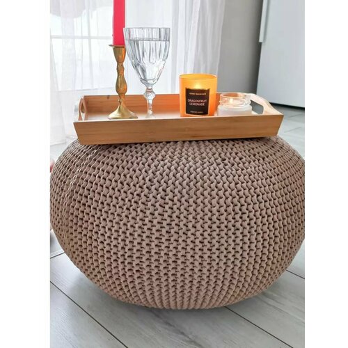 Вязаный пуф из трикотажной пряжи, кофейный: сравнение цен, характеристики, фото, актуальное наличие и цены.