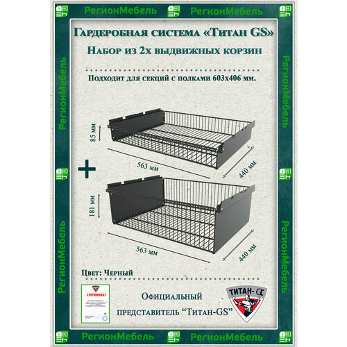 Купить Выдвижная корзина для гардеробной системы «титан-gs» Комплект-1+1 (563х440х181/85)Цвет: Черный с доставкой по всей России. Выдвижная корзина для гардеробной системы «титан-gs» Комплект-1+1 (563х440х181/85)Цвет: Черный: сравнение цен, характеристики, фото, актуальное наличие и цены.