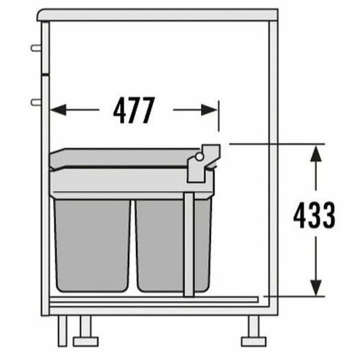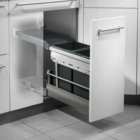 Выдвижная мусорная система Hailo Tandem 3663-10. Устанавливается в готовый выдвижной шкаф базой 30 см. Характеристики: -верхнюю крышку можно использовать в качестве полочки для губок и салфеток -ведра с ручками легко вынимаются, при желании их можно использовать при уборке -стационарная крышка крепится на боковые стенки шкафа, толщиной 16 или 19 мм -рама фиксируется ко дну шкафа и к фасаду -для установки в выдвижной шкаф Blum и Grass глубиной 50 см и Hettich глубиной 47 см -можно устанавливать в шкафы, оснащенные системами электрического открывания