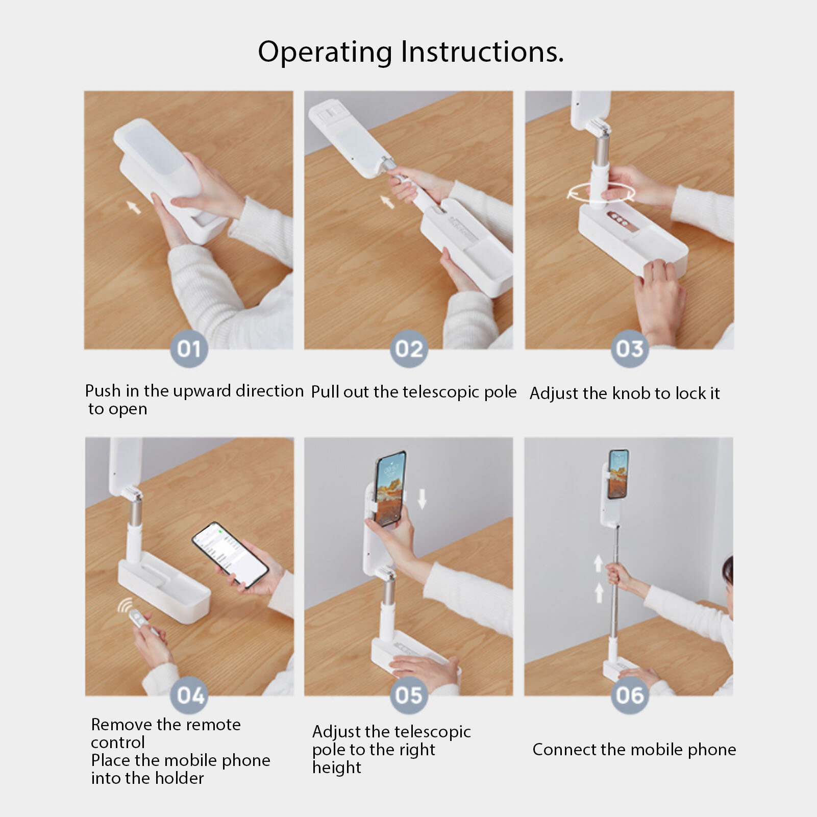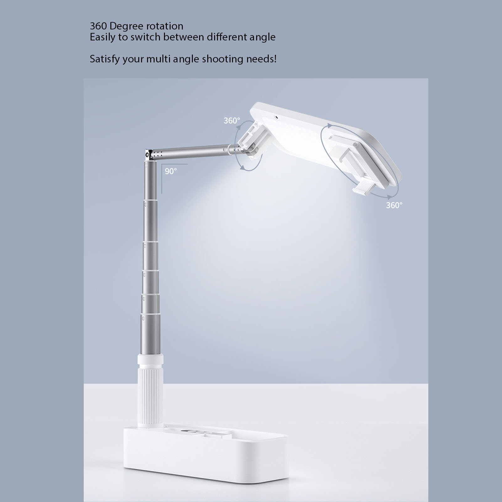 Выдвижная подставка для селфи с вращением на 360 градусов и держателем для телефона, перезаряжаемая беспроводная складная светодиодная лампа с 7 уровнями яркости для потоковой фотосъемки в реальном времени