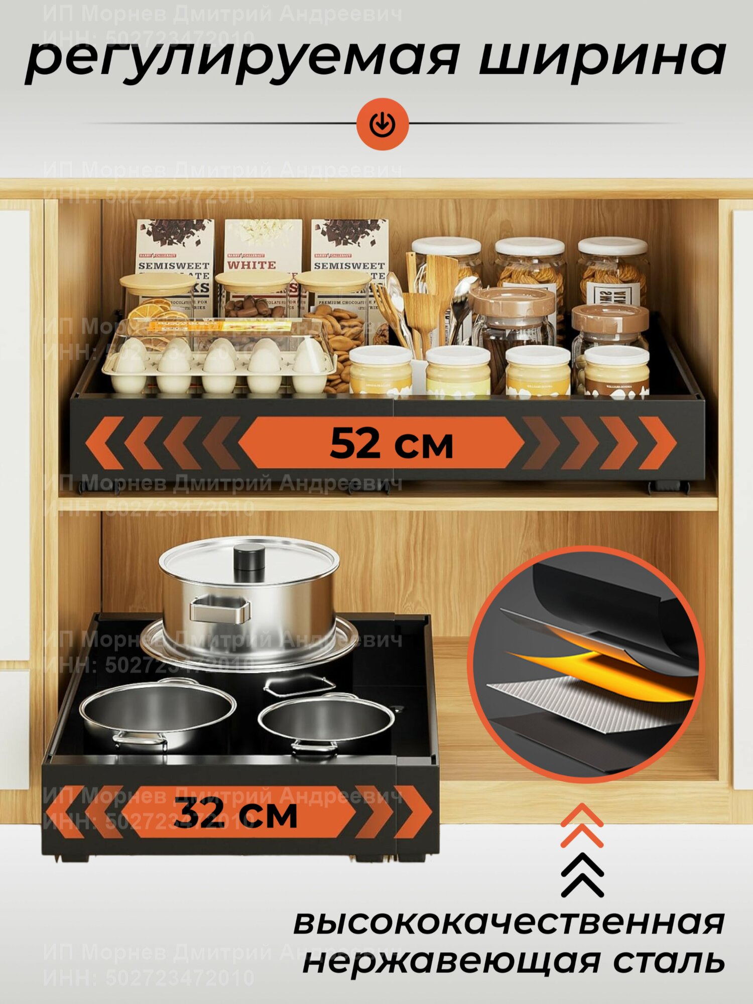 Купить Выдвижная полка для кухни в шкаф 32-52 см с доставкой по всей России. Выдвижная полка для кухни в шкаф 32-52 см: сравнение цен, характеристики, фото, актуальное наличие и цены.