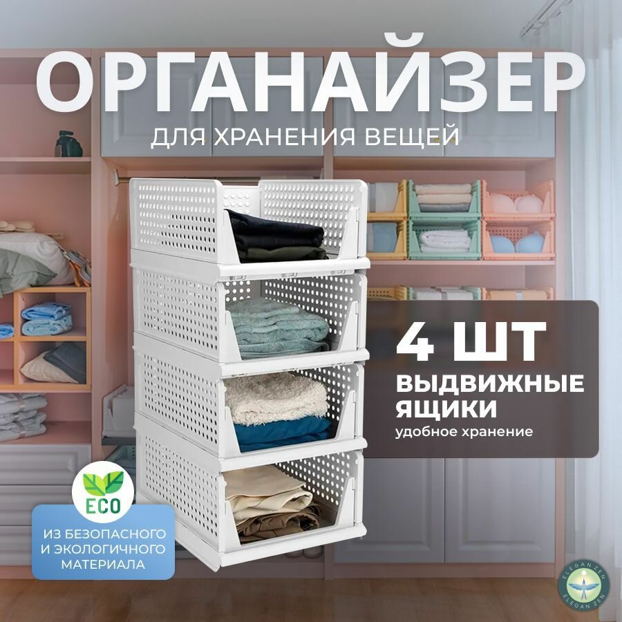 Выдвижная полка органайзер для хранения одежды и белья в шкаф, Система хранения вещей, комплект 4 штуки: сравнение цен, характеристики, фото, актуальное наличие и цены.