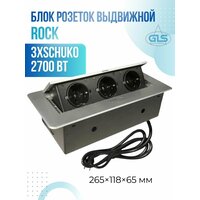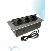 Купить Выдвижная розетка для столешницы GLS Toro Gray, 3xEURO, горизонтальная, блок розеток, кабель 1.8 м, удлинитель для кухни и офиса, серебристый с доставкой по всей России.