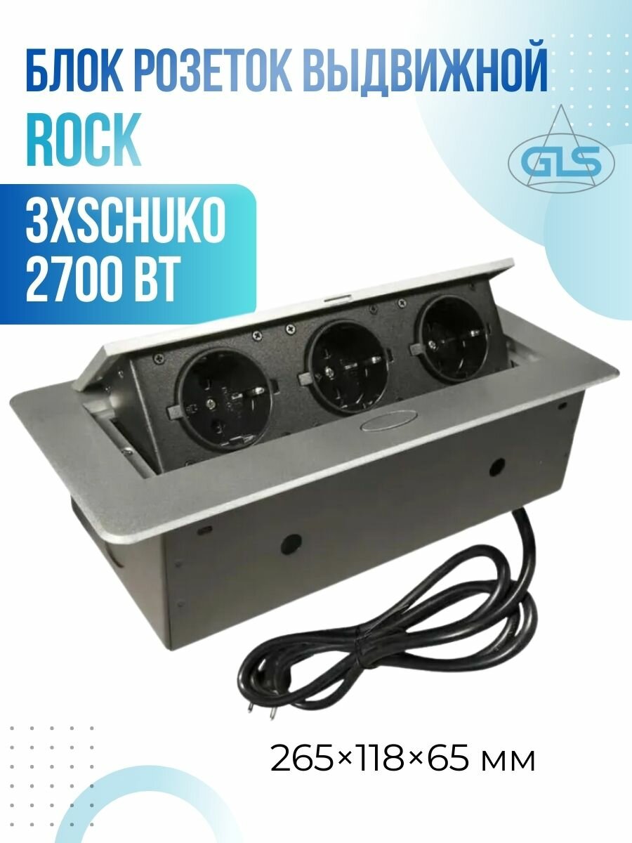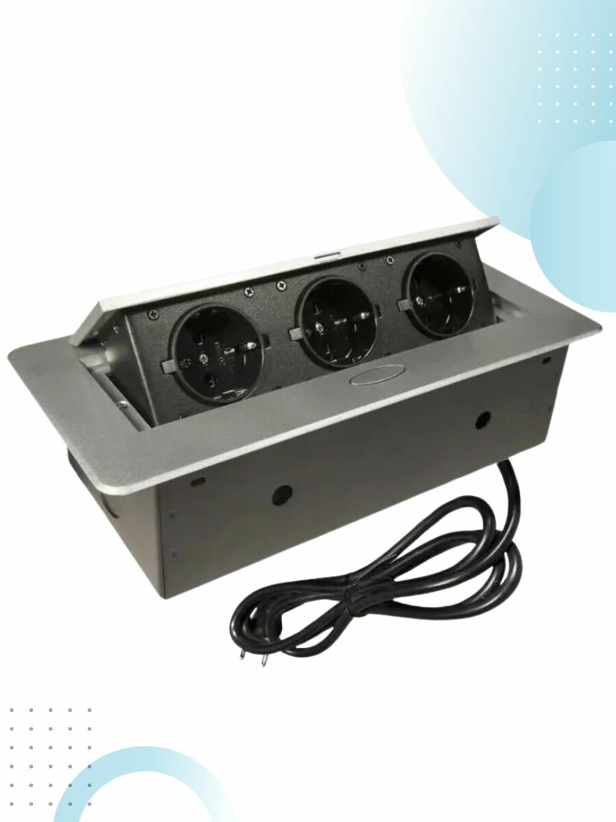 Выдвижная розетка для столешницы GLS Toro Gray, 3xEURO, горизонтальная, блок розеток, кабель 1.8 м, удлинитель для кухни и офиса, серебристый: сравнение цен, характеристики, фото, актуальное наличие и цены.