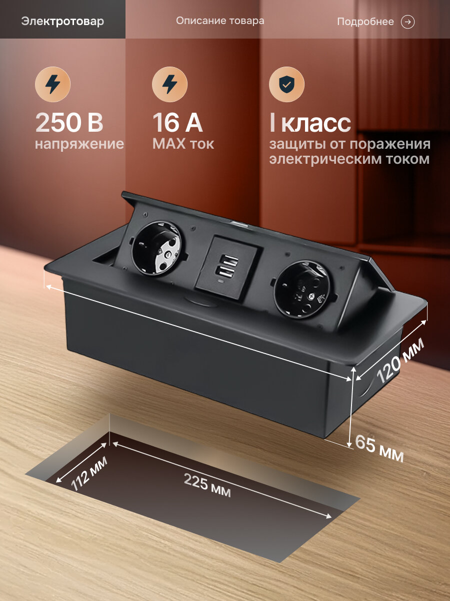 Выдвижная розетка горизонтальная POSocket-4 (2 розетки, 2USB входа, 1,5м кабель): сравнение цен, характеристики, фото, актуальное наличие и цены.