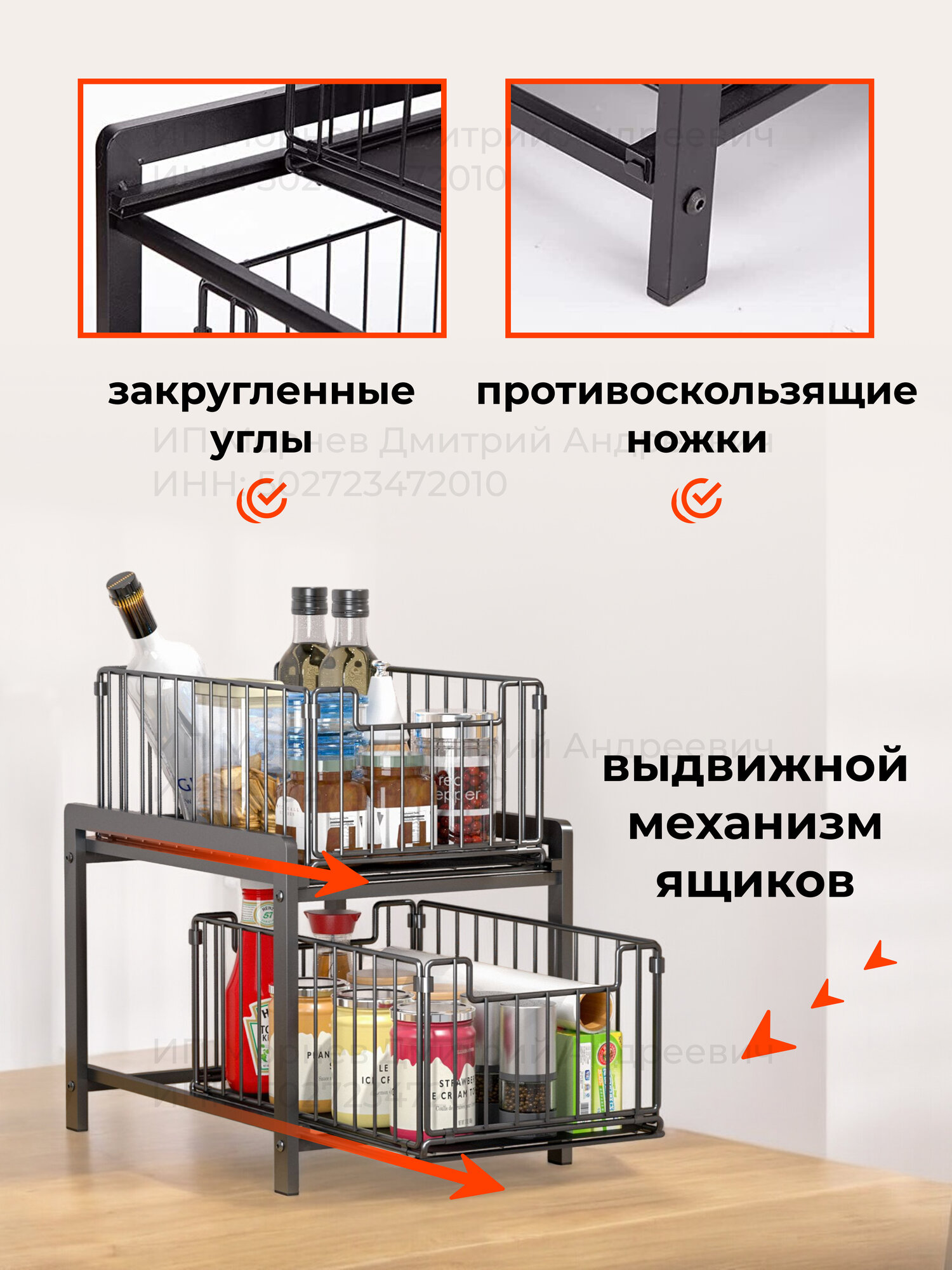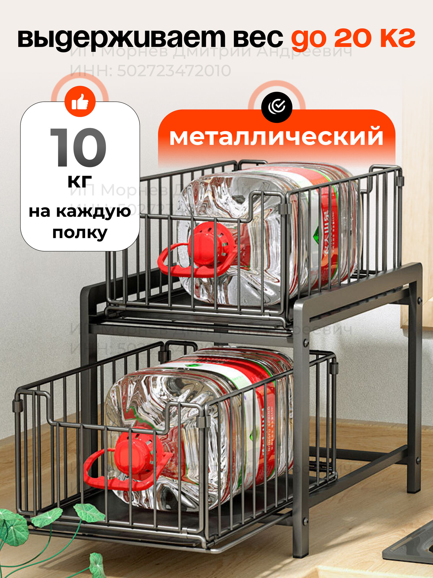 Выдвижной органайзер для кухни – это идеальное решение для организации пространства под раковиной или мойкой. Этот стильный и функциональный органайзер выдвижной оснащен двумя выдвижные полки для кухни, выполненными из прочного металла, что гарантирует долговечность и надежность. Максимальная нагрузка на каждый ящик составляет 10 кг, что позволяет хранить тяжелые предметы.