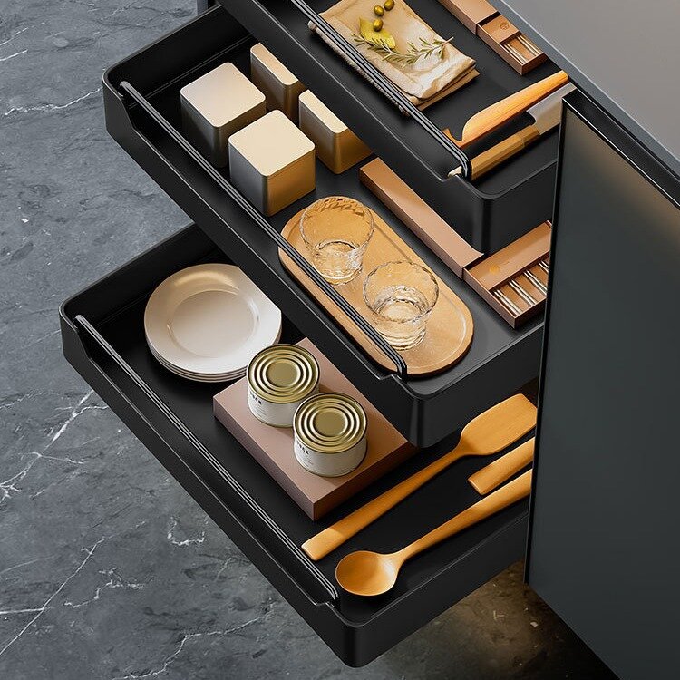 Выдвижной ящик выполнен в современном минималистическом стиле, что позволяет ему гармонично вписаться в любой интерьер кухни.