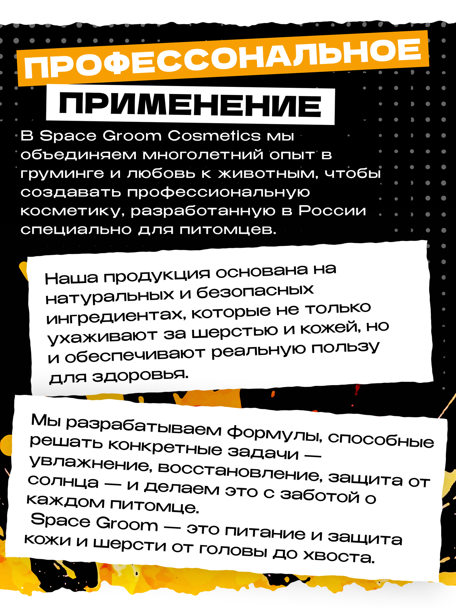Также обратите внимание на другие средства для ухода за вашим питомтом, рекомендованные официальным дистрибьютором Space Groom в России. Смотрите в карточке товара на последнем фото.