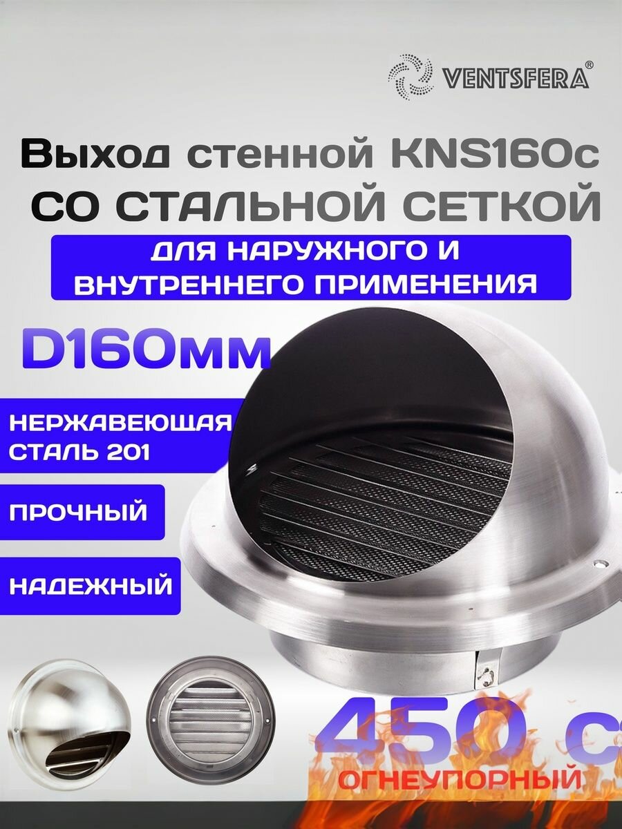 Купить Выход стенной KNS160c, со стальной сеткой, для наружного и внутреннего применения, D160мм, из нержавеющей стали / вентиляционный выход с доставкой по всей России. Выход стенной KNS160c, со стальной сеткой, для наружного и внутреннего применения, D160мм, из нержавеющей стали / вентиляционный выход: сравнение цен, характеристики, фото, актуальное наличие и цены.