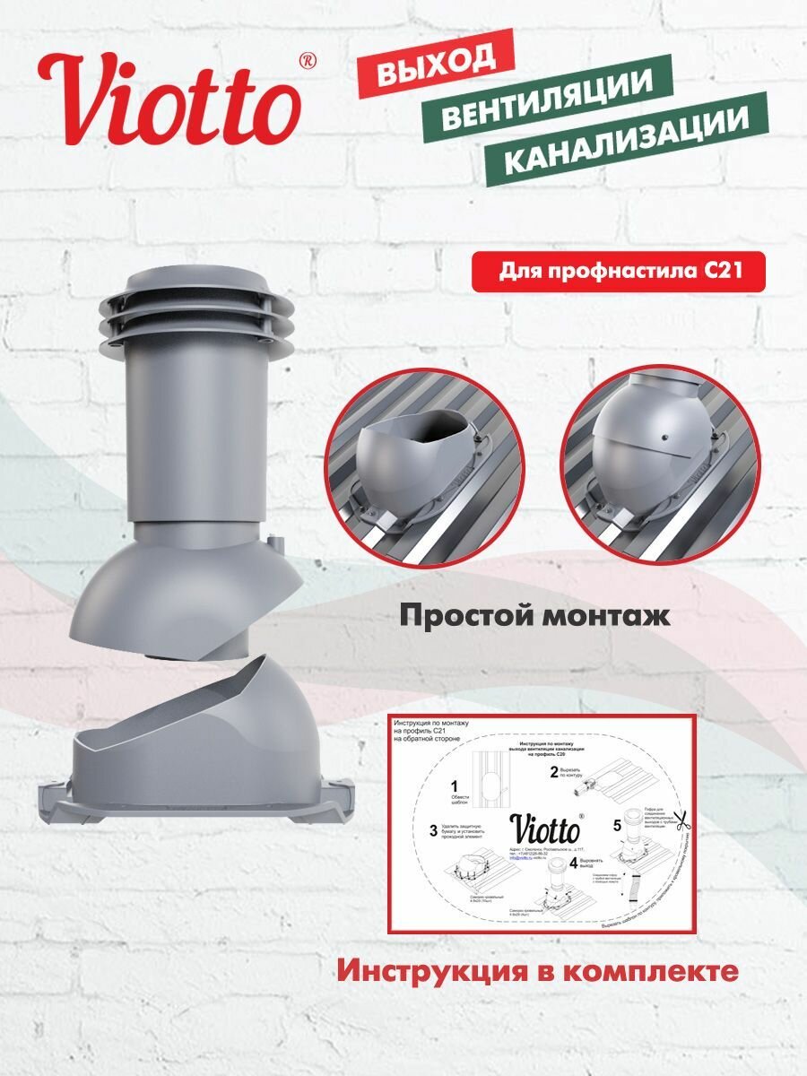 Выход вентиляции канализации Viotto для профнастила С21 серый графит (RAL 7024): сравнение цен, характеристики, фото, актуальное наличие и цены.