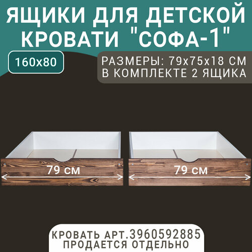 Комплект из двух ящиков для детских кроваток с размером спального места 160х80. Размер ящика: ДхШхВ 75х75х15, ширина фасада 79 см, высота фасада ящика 18 см.