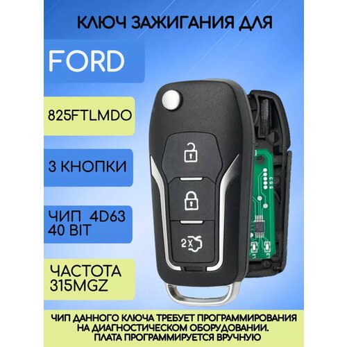 Ключ зажигания автомобиля с 3 кнопками для Форд Мондео 2 или 3 Ford MONDEO Форд фокус 2 Ford Focus 825FTLMDO. Обратите внимание, частота 315MHZ подходит только для американского рынка! Чип данного ключа требует программирования на диагностическом оборудовании. Кнопки можно прописать ручной процедурой. Частота 315 Mhz, с чипом 4D63 40 bit. Тип лезвия HU101. Логотип и батарейка в комплекте. Совместимость : FOCUS 2 CB4 2002 - 2011 MONDEO 4 CA2 2001 - 2011 GALAXY CA1 2006 - 2011 C-MAX CB3 2007 - 2010 FIESTA CB1 2008 - 2012. На этих платах можно менять частоту вручную, для этого нужно одновременно нажать кнопки Закрыть + Открыть именно одновременно, не всегда получается с первого раза) и удерживая их нажать 4-6 раз кнопку багажника. Желательно иметь частотометр, для того что бы сразу проверить, поменялась ли частота платы. Перед покупкой убедитесь что ваш автомобиль поддерживает комплектацию с пультом дистанционного управления.