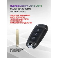 Выкидной ключ зажигания автомобиля с 3 кнопками для Hyundai / Хендай / Хундай. FCCID: 95430-J0500 Данный ключ требует программирования через диагностическое оборудование. Частота 433 Мгц. Обратите внимание, ключ без чипа! Чип под ваше авто необходимо приобрести отдельно! Лезвие, логотип и батарейка входят в комплект. Совместимость : Hyundai Accent / Акцент 2018-2019г.