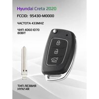 Выкидной ключ зажигания автомобиля с 3 кнопками для Hyundai / Хендай / Хундай. FCCID: 95430-M0000 Данный ключ требует программирования через диагностическое оборудование. Частота 433 Мгц с чипом 4D60 ID70 80BIT. Лезвие, логотип и батарейка входят в комплект. Совместимость : Hyundai Creta / Крета 2020г.