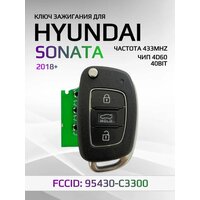 Выкидной ключ зажигания автомобиля с 3 кнопками для Hyundai / Хендай / Хундай. FCCID: 95430-C3300 Данный ключ требует программирования через диагностическое оборудование. Частота 433 Мгц с чипом 4D60 80BIT. Лезвие, логотип и батарейка входят в комплект. Совместимость : Hyundai Sonata / Соната 2018г.+