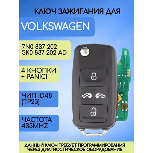 Выкидной ключ зажигания для VW / Фольксваген с частотой 433 Мгц: сравнение цен, характеристики, фото, актуальное наличие и цены.