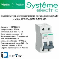 Купить Выключатель автоматический 2P (Тип-С) 25А 6kA Systeme Electric (Schneider Electric) City9 Set C9F36225 — 1шт. с доставкой по всей России.