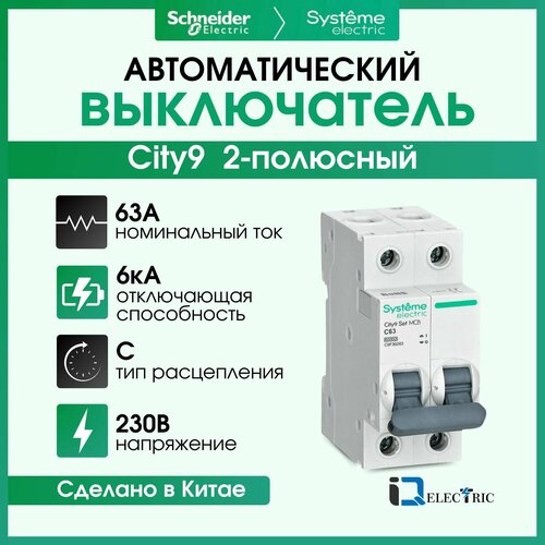 Купить Выключатель автоматический 2P (Тип-С) 63А 6kA Systeme Electric (Schneider Electric) City9 Set C9F36263 — 1шт. с доставкой по всей России.