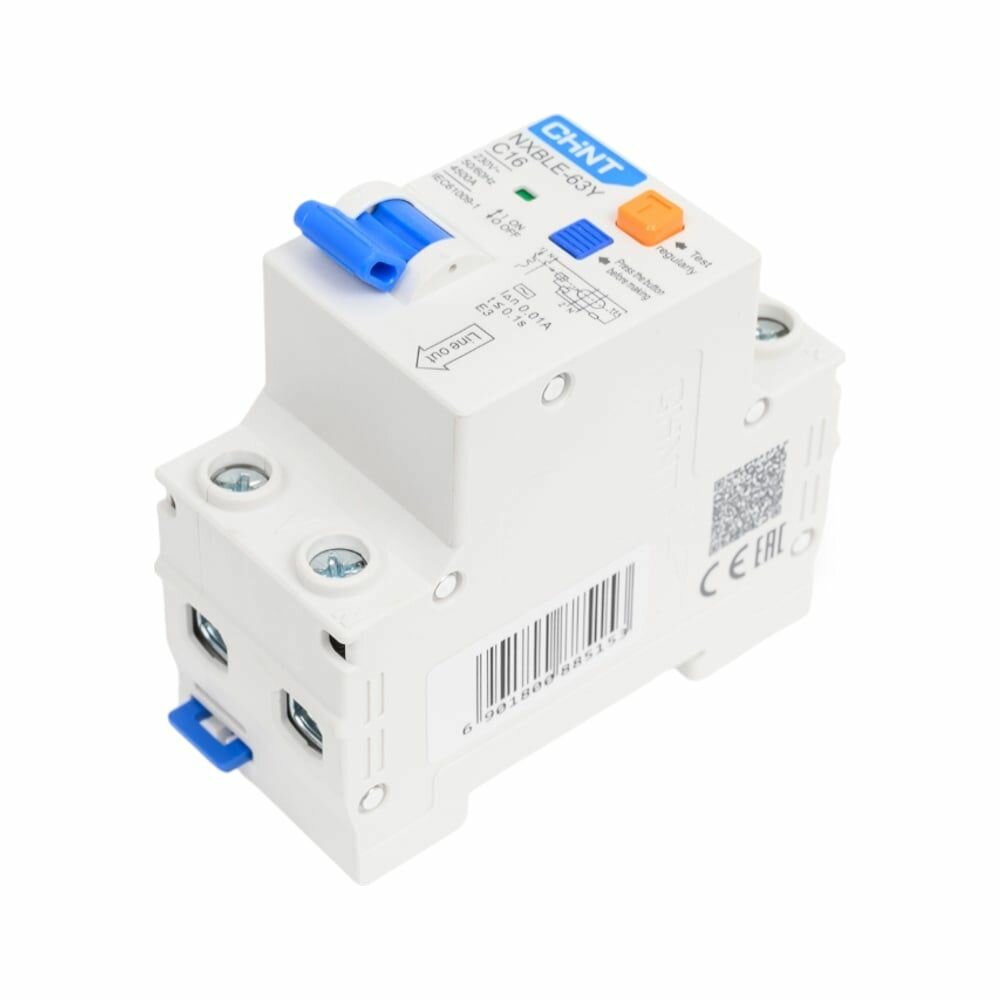 Автоматические выключатели дифференциального тока (АВДТ) серии NXBLE-63Y предназначены для применения в сетях переменного тока напряжением до 400 В частотой 50/60 Гц с номинальным током до 63 А для нечастых включений и отключений нагрузок, а также защиты от перегрузки, короткого замыкания, поражения электрическим током при косвенных прикосновениях и возгораний по причине утечки тока в электроустановках жилых, общественных и промышленных зданий. Необходимо проверять работоспособность АВДТ серии NXBLE-63Y нажатием на кнопку «Тест» не реже 1 раза в месяц. Основные характеристики: Номинальный ток – от 6 А до 63 А Исполнение по числу полюсов – 1P+N Тип характеристики мгновенного срабатывания – С, D Отключающая способность – до 4500 А Ном. отключающий дифференциальный ток – 10 мA; 30 мA Тип АВДТ – AC Конструктив устройства – электронный Механическая износостойкость – 20000 циклов В/О Электрическая износостойкость – 10000 циклов В/О Степень загрязнения – 2 Степень защиты – IP20 Монтаж – на симметричную DIN-рейку 35 мм Подключение нагрузки – снизу Сигнализация – окошко индикации положения главных контактов АВДТ серии NXBLE-63Y дополнительно могут оснащаться следующими устройствами: - вспомогательный контакт состояния AX-X1; - сигнальный контакт аварийного срабатывания AL-X1; - независимый расцепитель SHT-X1 или расцепитель минимального/максимального напряжения (OUVT-X1; UVT-X1; OVT-X1).