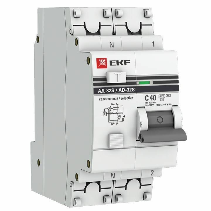 Выключатель автоматический дифференциального тока 2п (1P+N) 40А 100мА АД-32 селект. PROxima EKF DA32-40-100S-pro: сравнение цен, характеристики, фото, актуальное наличие и цены.