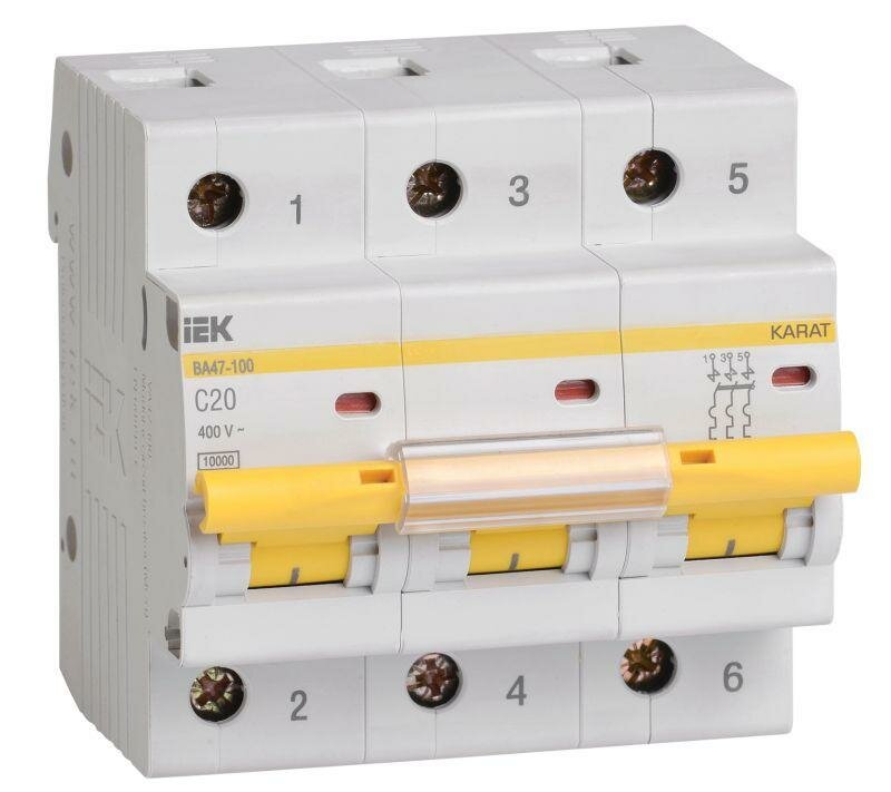 Выключатель автоматический модульный 3п C 20А 10кА ВА47-100 KARAT IEK MVA40-3-020-C: сравнение цен, характеристики, фото, актуальное наличие и цены.
