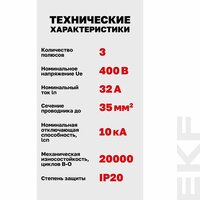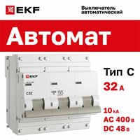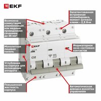 Автоматический выключатель ВА 47-100 EKF mcb47100-3-100C-pro (3Р, 100 А, 10 кА, характеристика С)